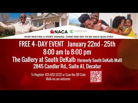 DeKalb County and the Neighborhood Assistance Corporation of America will host a four-day homeownership event Jan. 22'Jan. 25 at South DeKalb Mall offering no down payment, no closing costs, no credit score requirement and access to below-market interest rates for DeKalb County residents.