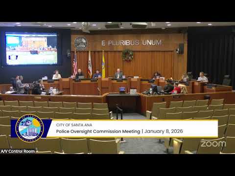 Commissioners received a staff presentation on Santa Ana Police Department vehicle‑pursuit statistics covering January 2022 through November 2025 and spent the bulk of the meeting asking for targeted follow‑ups rather than immediate policy changes.