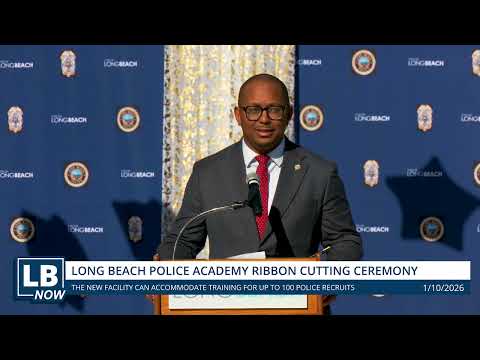 Long Beach city leaders and police officials onstage at a ribbon-cutting celebrated the opening of a new, state-certified Long Beach Police Academy, calling it a long-planned investment in training and recruitment that will increase the department’s throughput and prepare 'class 100,' the largest in department history.