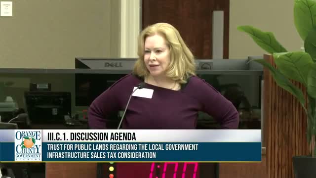 The Orange County commission on Jan. 13 heard a presentation from Peggy Hanrahan of the Trust for Public Land (TPL) about options to fund a permanent conservation and parks program through a county infrastructure sales tax or bond measure.