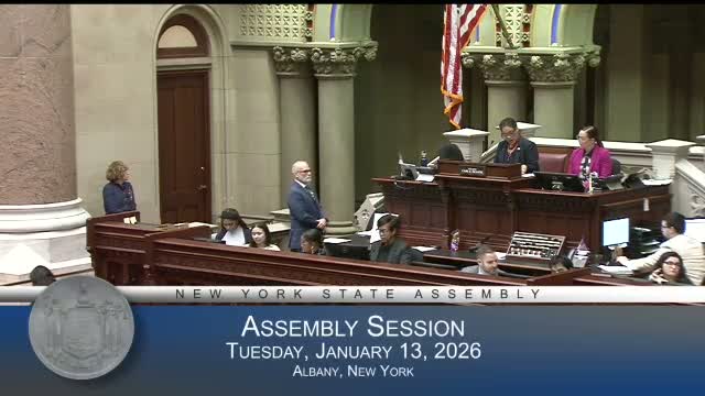 The New York State Assembly advanced the A calendar and passed several bills on Jan. 13, 2026, including measures amending the public service, education and executive laws; many items were approved on the consent calendar by voice vote.