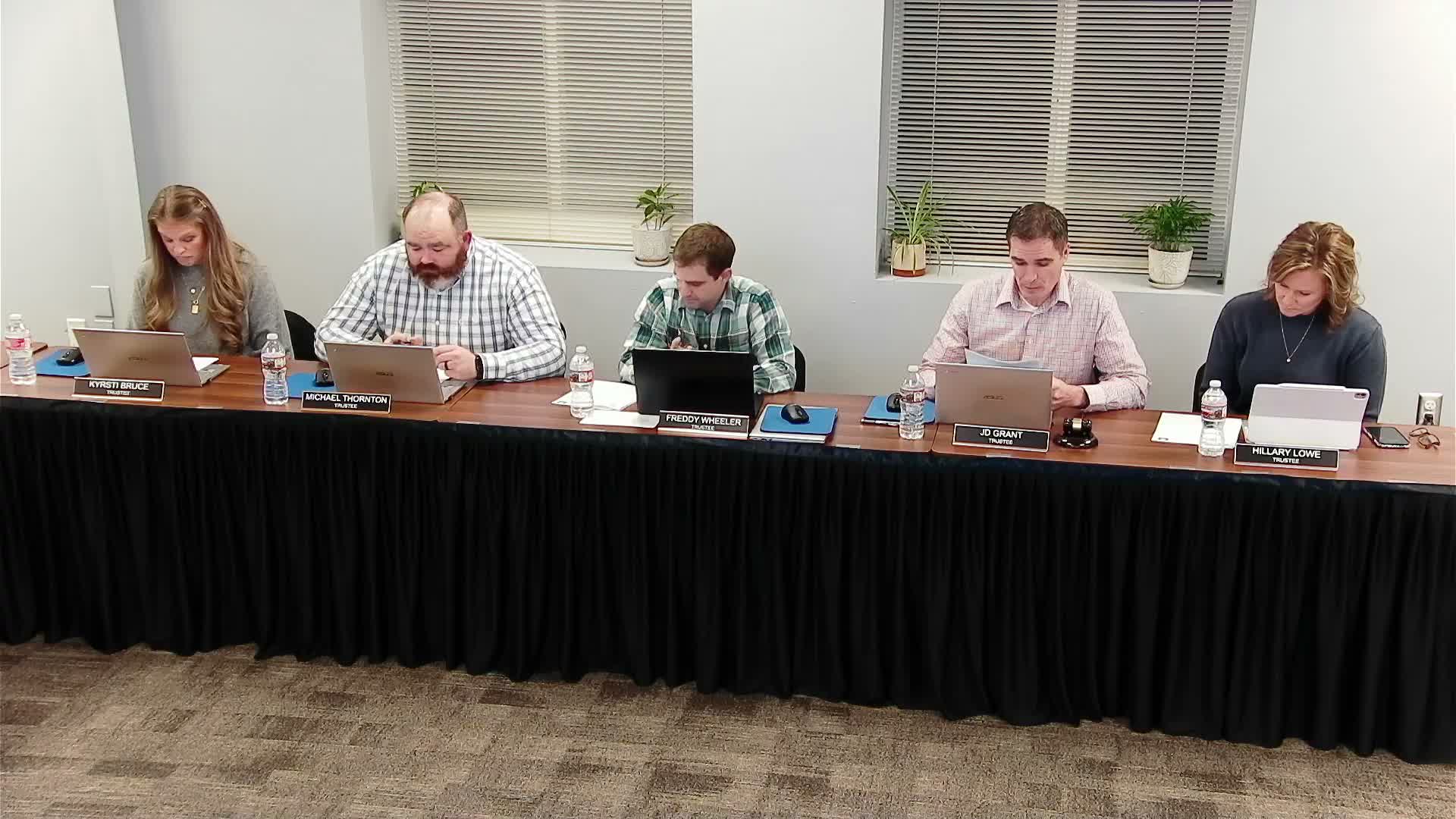 Trustees elected Michael Thornton chair, appointed Jonathan Gillen as district treasurer and Deanne Greaney as district clerk, set the 2026 meeting schedule and named committee representatives; several motions carried by recorded votes.