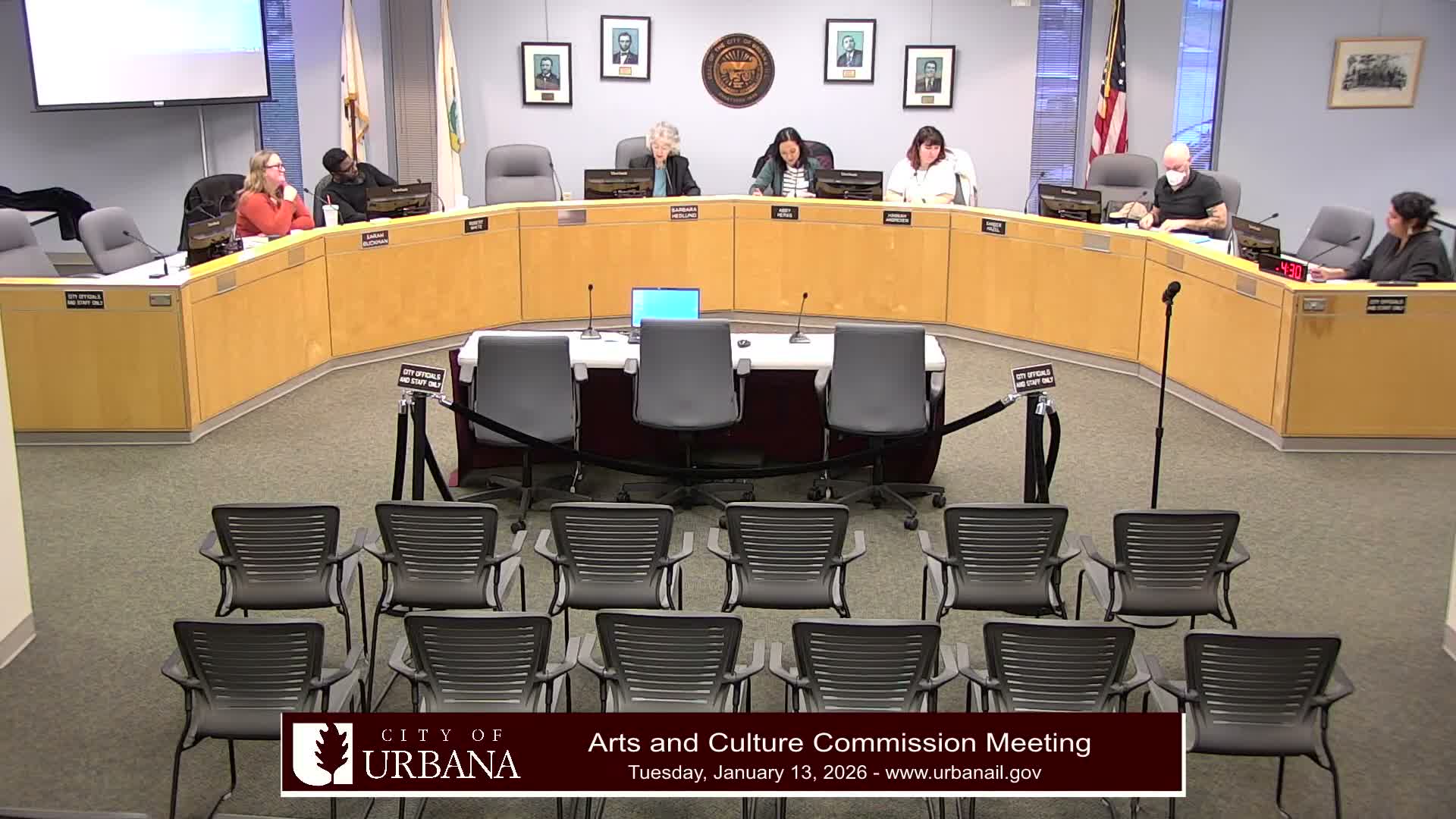 The Urbana Arts and Culture Commission recorded the following formal actions on Jan. 13 (voice votes; no recorded nays):
