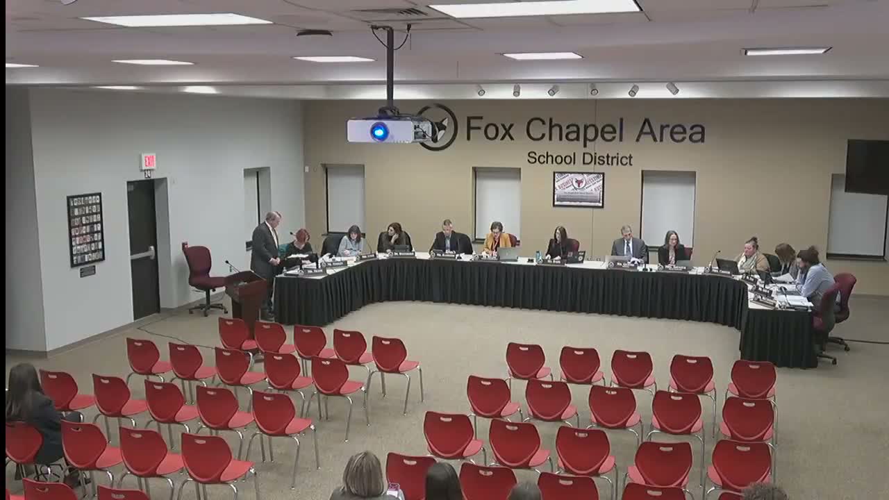 The Fox Chapel Area School District board accepted an unmodified audit for fiscal year ending 6/30/2025, heard auditors report a $2.6 million net increase in fund balance, and approved seven finance actions including disbursements, budget transfers and a resolution not to exceed the Act 1 index for 2026-27.