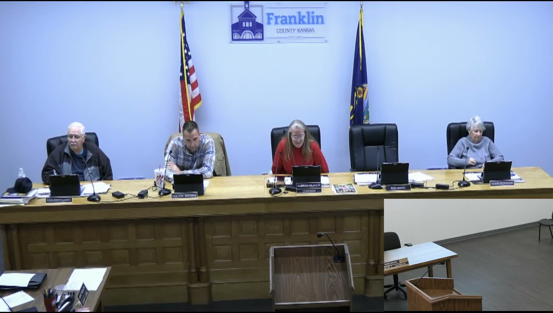 Franklin County staff told commissioners it will remain under an existing solid-waste contract despite a change in ownership, requested a $20,000 intra-department transfer to move a 2007 truck to the Noxious Weed program, and said it will analyze fees for adding credit-card payments.
