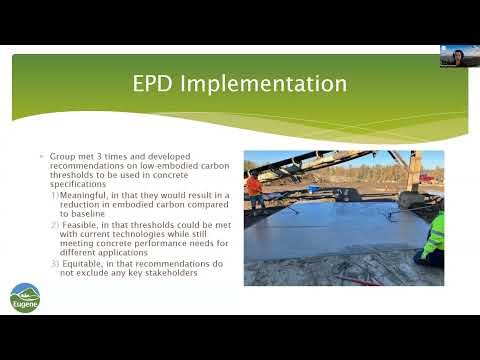 EPDs are third‑party verified documents that report a product’s life‑cycle environmental impacts. Vicunas said the city convened a greenhouse‑gas threshold committee in 2023 that included city staff, Lane County materials‑testing lab staff and local suppliers Riverbend and Knife River; the group used National Ready Mixed Concrete Association (NRMCA) Pacific Northwest benchmarks to set maximum global‑warming‑potential thresholds for concrete. Using Riverbend’s EPD as an example, Vicunas showed a 3,000‑psi mix with a reported global‑warming potential around 170 CO2e per cubic yard, below the city threshold of 200 CO2e per cubic yard.