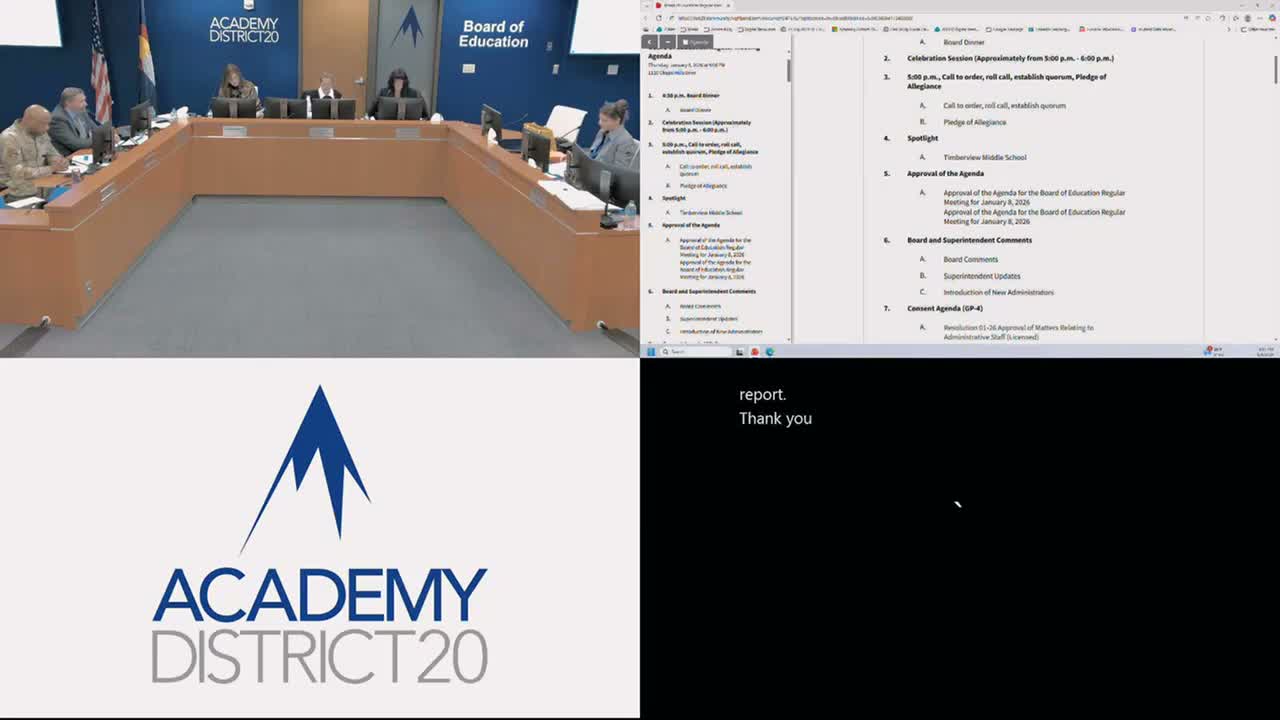Earlier in the meeting, Superintendent Haberow highlighted student work and community engagement: a Foothills Elementary student team developed a child‑friendly AI app to help students reflect on emotions, and the presentation noted the district’s completion of projects funded by the 2016 bond measure (approved by voters, roughly $230 million), with a short video to be posted publicly that showcases the completed projects.