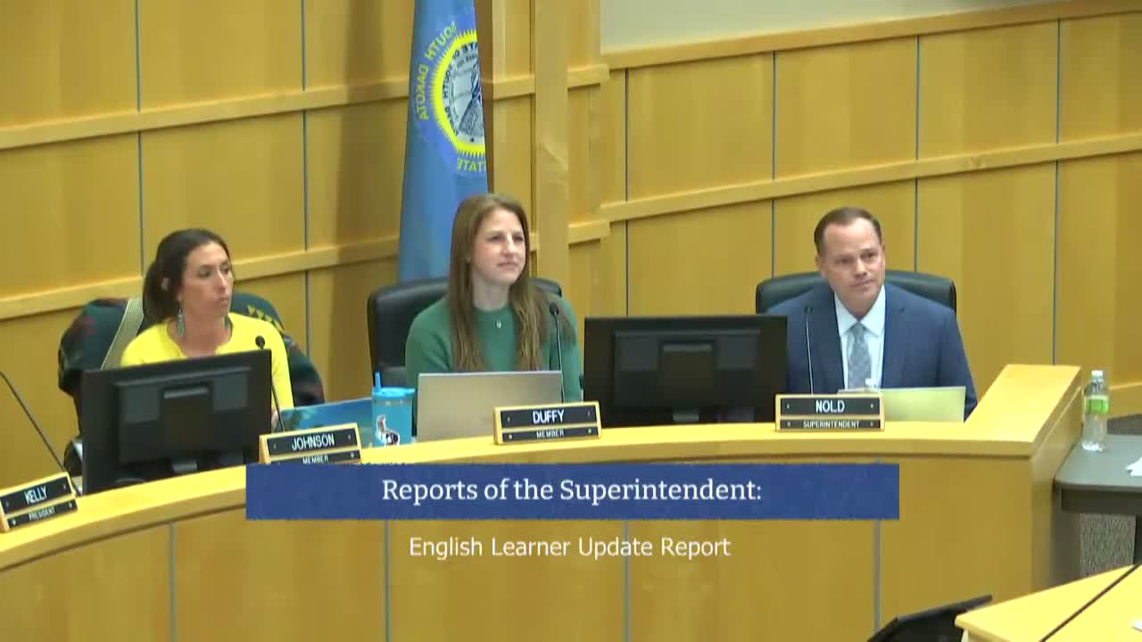 Board members asked about regional and national comparisons; Miss Clawson said the district compares to surrounding districts and the state average and that Sioux Falls contains about 40% of the state's EL population. When asked about funding, Miss Clawson said the initiatives are locally funded through the general fund, with federal Title III/Title I funds supplemental.