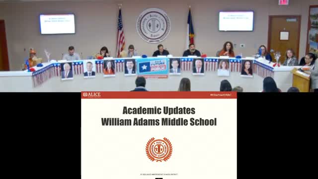 Principal Grace Stettis presented a detailed status report for William Adams Middle School to the Alice ISD board on Jan. 12, outlining enrollment, subgroup demographics, attendance work and academic targets for the year.