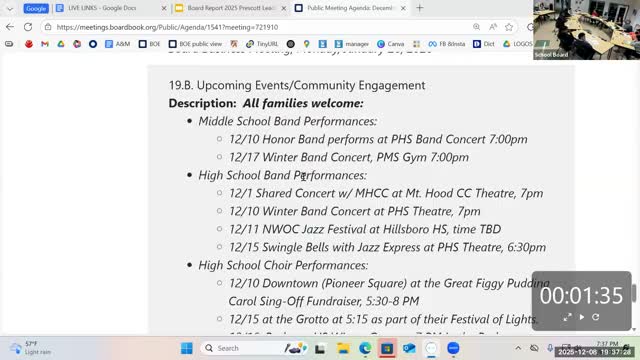 The Parkrose SD 3 Board of Education approved funding Dec. 8 to replace both sides of the high‑school bleachers and to repair deteriorating exterior cladding and columns at the high school.
