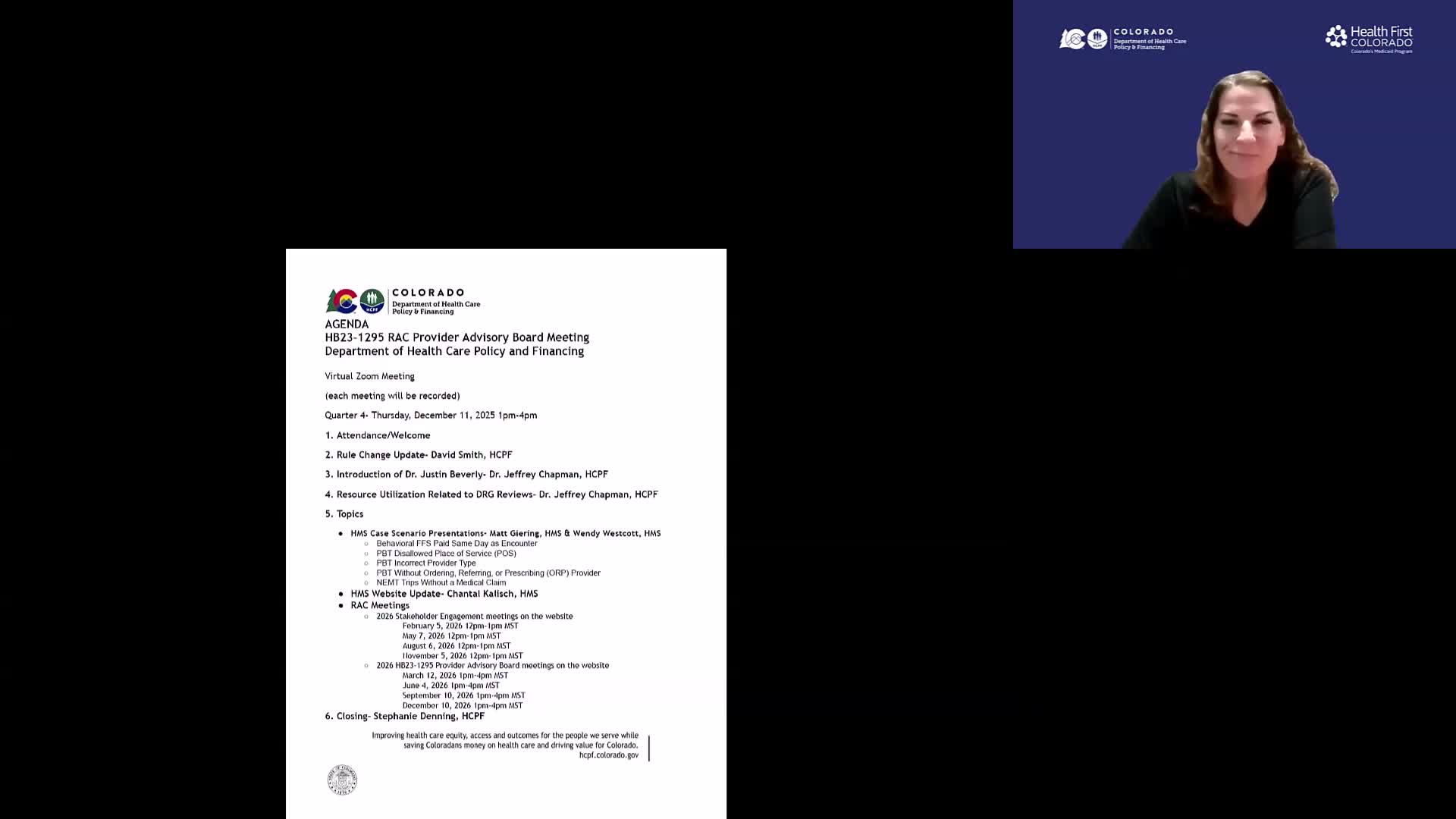 Chantelle (HMS website lead) told the advisory board the HMS Colorado RAC website will be redesigned for better provider usability and accessibility; during the update the site will temporarily show limited content but will retain essential resources such as the HMS provider portal link and contact references. "Our new website should roll out early 2026," she said.