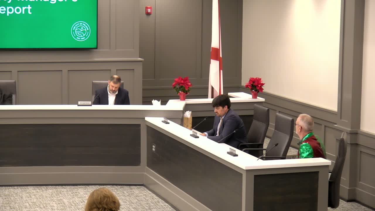 City Manager Gretchen DeFonte reviewed 2025: balanced budgets and a 4% average revenue growth since 2017, record recreation facility revenues and investments in water, roads and public safety; the council heard plans and progress on multiple multiyear capital projects.