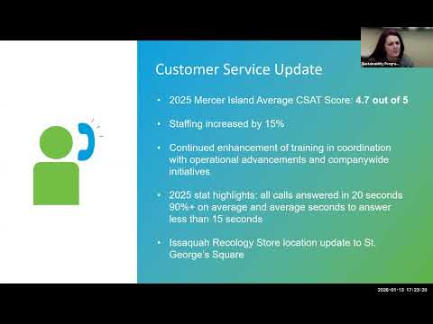Recology told the Mercer Island Utility Board that customer satisfaction and key service metrics improved in 2025, while King County disposal costs and CPI adjustments produce modest 2026 rate increases ($0.30 for a 20-gallon cart, $0.19 for multifamily). The company also previewed outreach and state policy impacts.