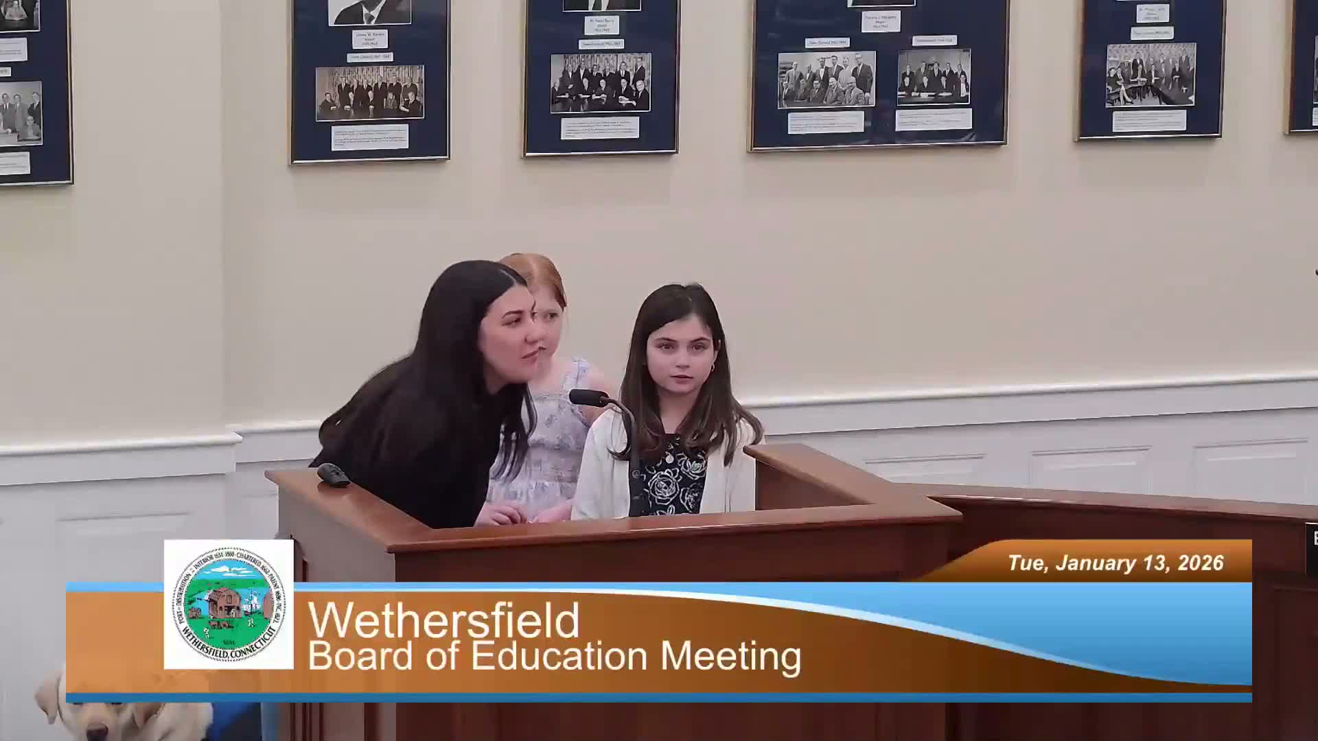 At the Jan. 13 Wethersfield Board of Education meeting, parents, students and handlers introduced Lenny, a therapy dog trained by BluePath Service Dogs who will work with students at Webb Elementary; the board and community praised the program and discussed handler training and schedules.