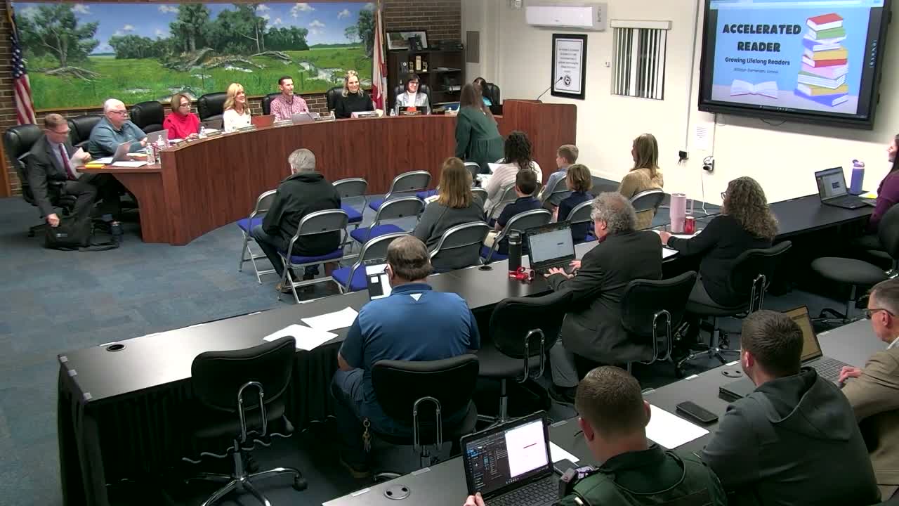 Williston Elementary staff and students told the Levy County School Board that the school has restored the Accelerated Reader (AR) program and is using it to build reading stamina and enthusiasm rather than tying AR to grades.