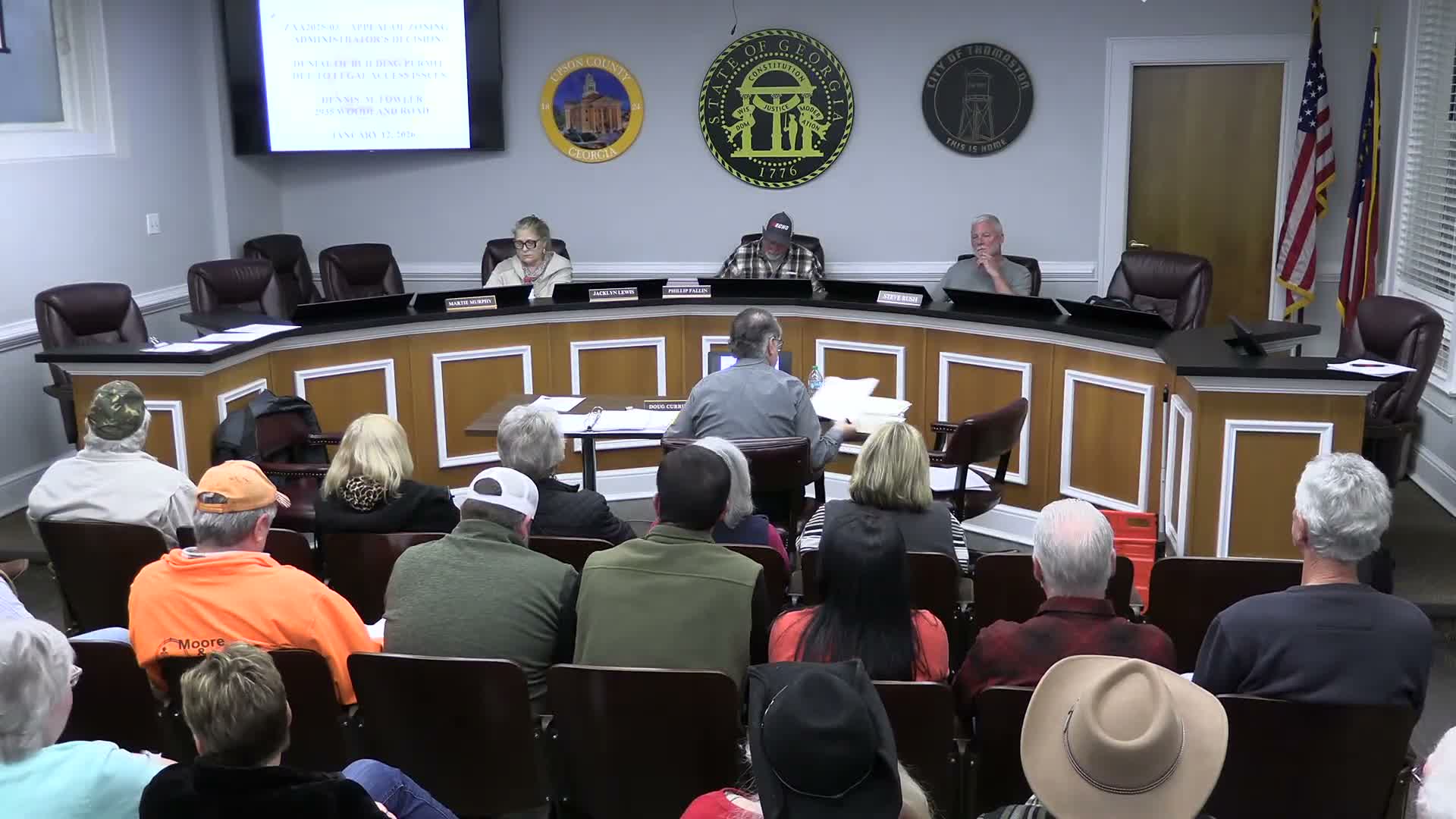 At its January 2026 meeting the Upson County Planning and Accounting Commission voted to recommend denial of a special exception for a proposed veterinary hospital on Fire Tower Road and separately denied the related variance request, following a staff presentation and more than two hours of public comment.