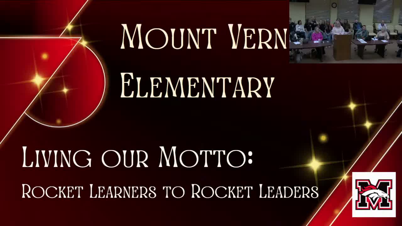 Fifth-grade student leaders from Mount Vernon Elementary described service projects, fundraising efforts (one student said she raised nearly $2,000), and extracurricular programs such as archery and basketball during the board's school showcase segment.