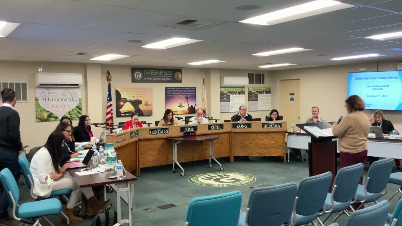 The Greenfield Union School District board approved its 2025–26 first interim budget report on Dec. 11, accepting staff—indings that the district's multiyear projection supports a "positive" certification.