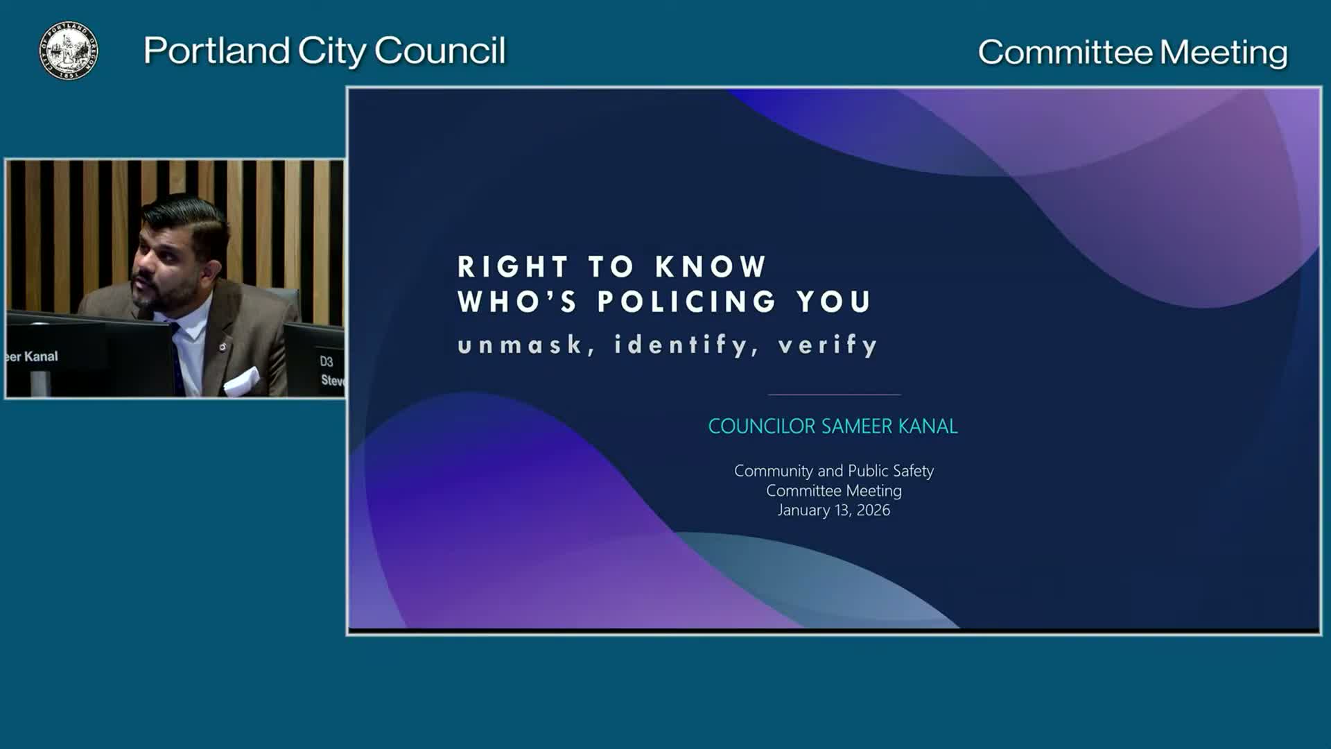 Portland — The Community and Public Safety Committee on Jan. 13 reviewed a draft ordinance intended to ensure Portlanders "have a right to know who’s policing you," but the panel took no vote and invited public feedback.