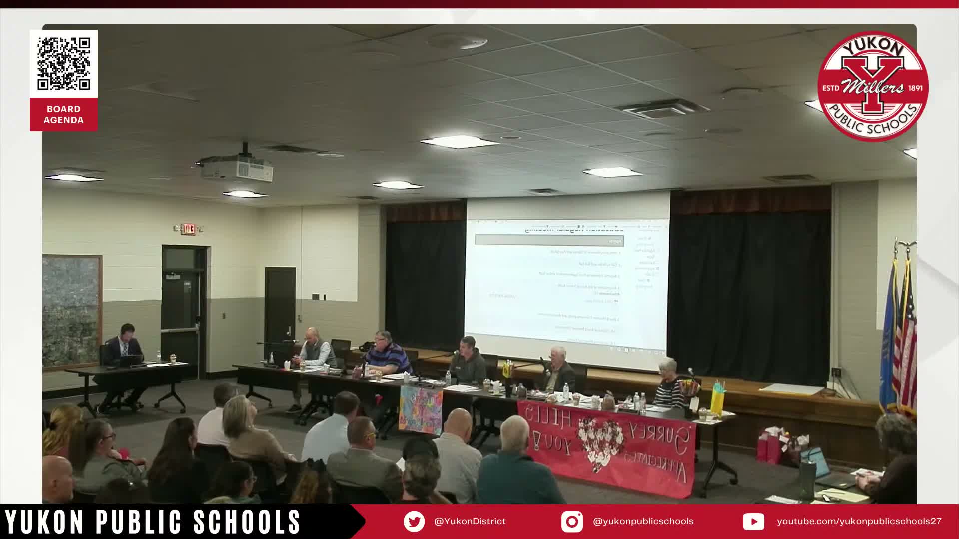 At its regular meeting, the Yukon School Board recognized 13 'Miller Strong' student award winners from across district schools, opened with a prayer and student-led pledge, and marked board appreciation month with remarks from district leadership.