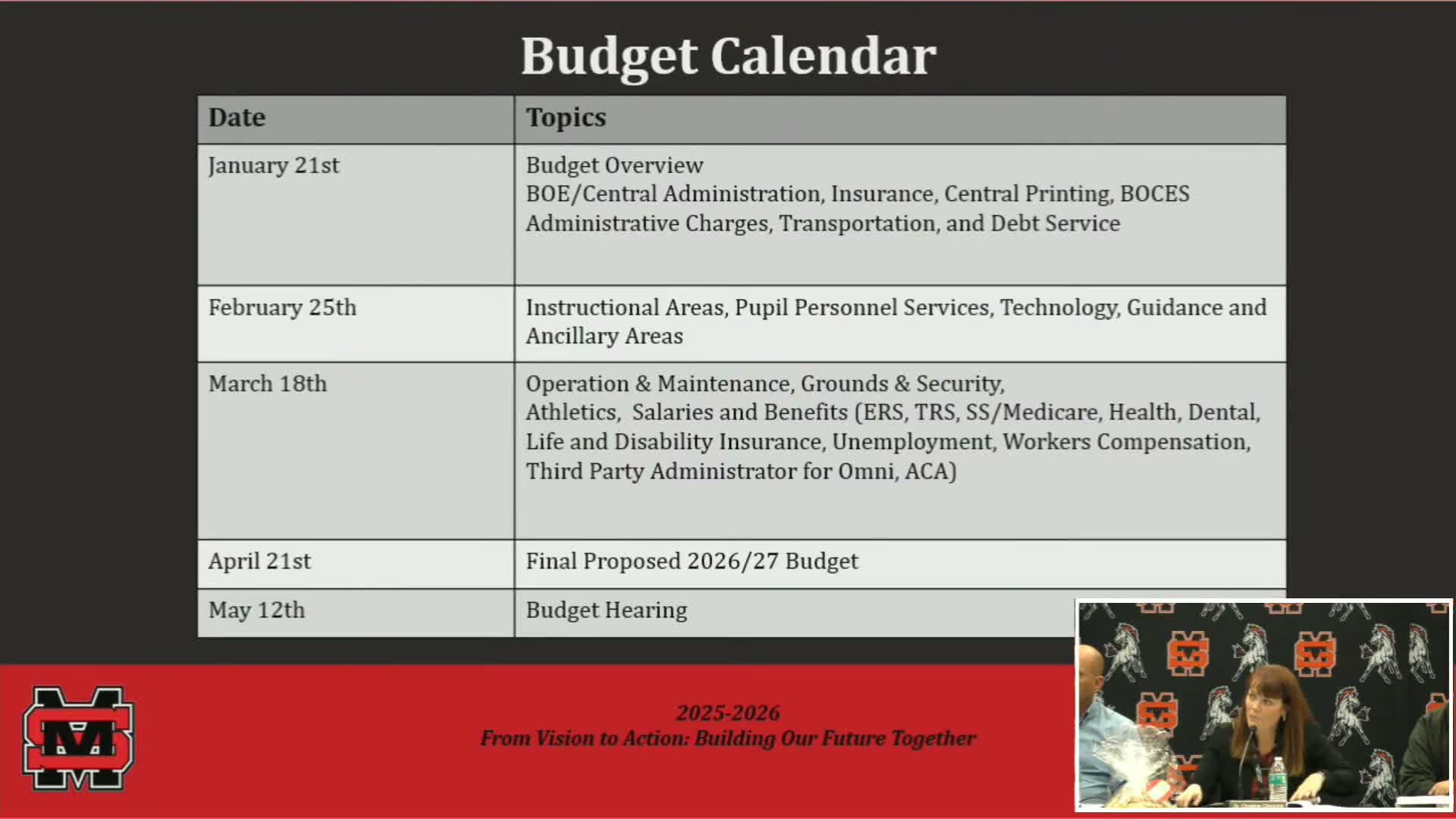 Dr. Cristioni provided districtwide updates at the board’s December meeting, highlighting recent student activities, music concerts and community service projects and outlining the district’s budget calendar for the 2026 budget process.