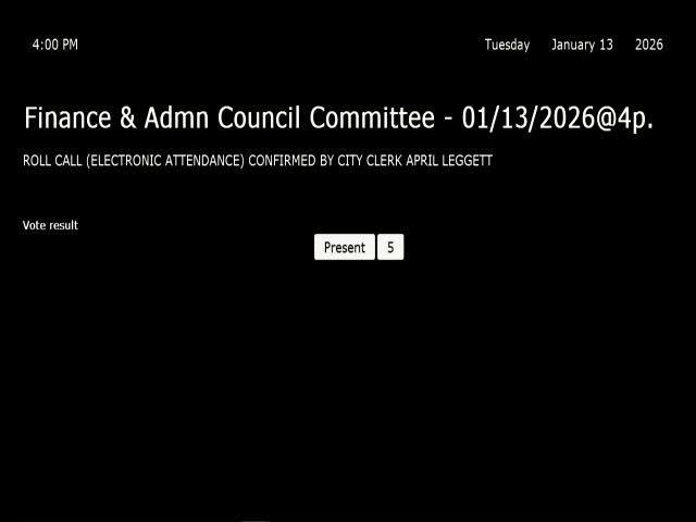 At its first meeting of the year, the Finance Administration Committee elected a chair (Joe Heffner), moved to approve December 30 minutes (with a noted change), and forwarded several municipal-lien resolutions (Res. 26,001–26,004) to the full City Council; a member asked about a duplicated parcel identifier during one reading.