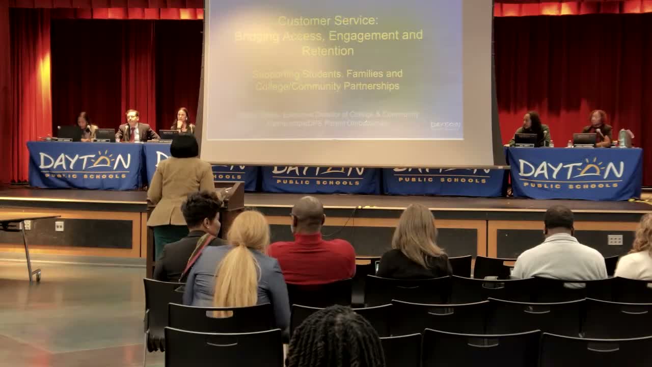 Sharon Goins, executive director of College and Community Partnerships and the district ombudsman, told the Dayton Board of Education on Jan. 13 that newly intensified family navigation, restorative conferencing and partnership work have measurably reduced student departures and complaints.