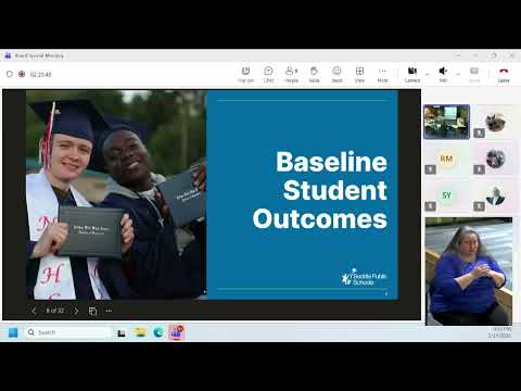 Key findings and data: Staff identified several interim measures that expose disparities. For middle school, 52.5% of eighth graders citywide had completed two required High School and Beyond tasks; subgroup rates were lower for students receiving free or reduced-price lunch (41.5%), African American males (39.4%) and students of color described as furthest from educational justice (44.3%). For eleventh graders, staff said only 4.6% had completed all four specified Grade 11 tasks by the end of eleventh grade, though the district cautioned that many students keep resumes and artifacts outside the district system and thus are undercounted in current data. Staff also reported 68.5% of current eleventh graders met a Grade 10 on-track measure (Washington State history plus at least 12 targeted credits) and that 91% of seniors met a dual-credit or work-based interim measure.