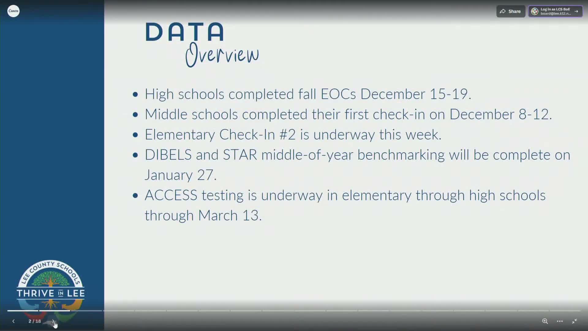 Lee County Schools reports modest gains on interim checks; presenters caution about small samples