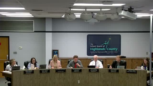 The Highlands County School Board voted to adopt a revised agenda and approved multiple consent items during the meeting. Motions to approve were made and seconded and board members recorded affirmative roll-call votes for the items presented.