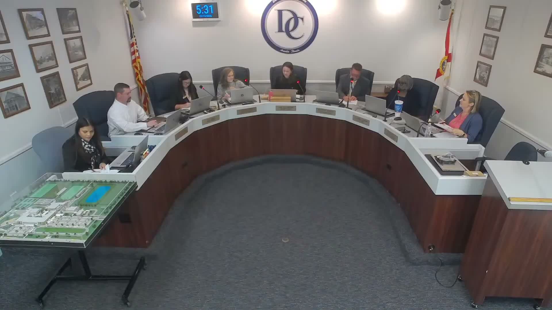 The DeSoto County School Board on Jan. 13 publicly recorded that a facilities-naming proposal had been removed from the published agenda and discussed whether that removal complied with statutory requirements.