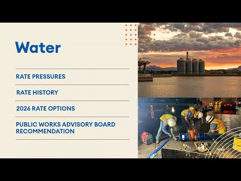 Gilbert officials on (presentation date) asked the town council to publish a notice of intent to raise utility rates for water and solid waste and begin a 60-day public review period, citing shrinking Colorado River supplies, sharply higher water costs, aging treatment infrastructure and rising post-collection disposal and vehicle costs.