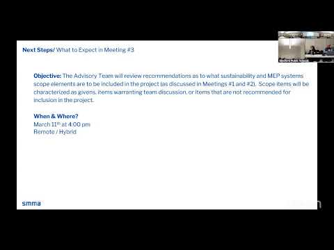 The meeting also covered PV and battery storage. Presenters explained Medford policy language about roof PV coverage (examples cited: 40–50% roof coverage or readiness depending on code path) and noted battery storage helps reduce demand charges and can improve LEED point totals, though battery commissioning costs may not be reimbursed by MSBA. The team committed to a life‑cycle cost analysis that will evaluate PV ownership versus third‑party PPAs, storage value for demand‑response, and interactions with utility rate structures.