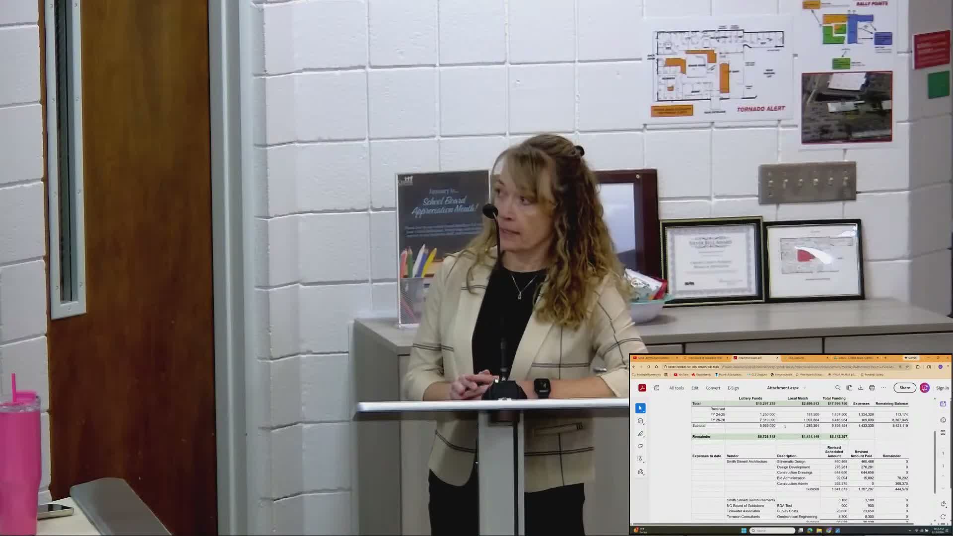 Daley also noted an $835,974 increase in other restricted funds (collections from school activity fees, facility rentals and reimbursements), donations including a $35,000 CTE grant and a $25,000 Bosch grant, and a $572,000 School Resource Officer (SRO) payment that is now issued directly as a check rather than routed through the state. She said some smaller adjustments reflect p‑card reimbursements and student activity accounts.