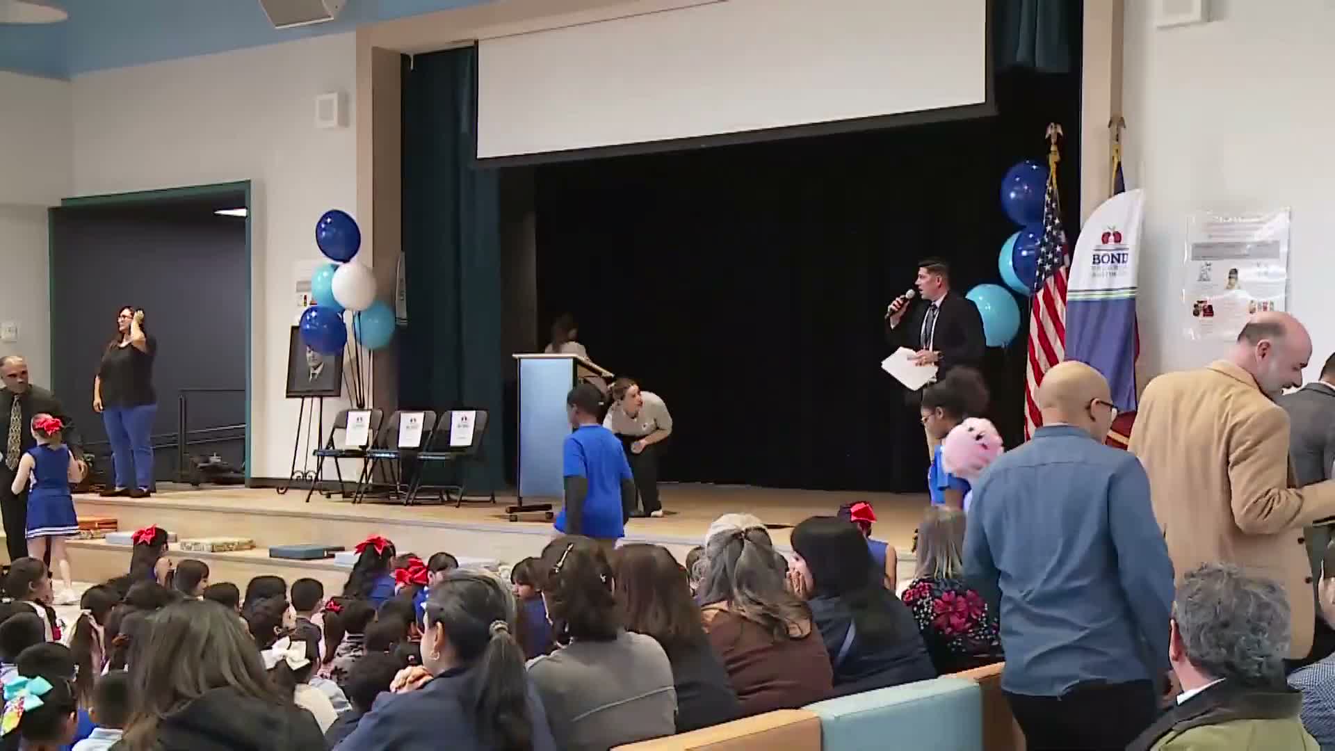 Event organizers recognized project partners—including Kirksey (architects), Flipco (general contractor) and AECOM (program manager)—and asked teachers, parents and community members who served on the campus architect team to stand for applause. The district also announced teacher awards: Anne Quintanilla was named Teacher of the Year and Ms. Mejia was named Teacher of Promise.