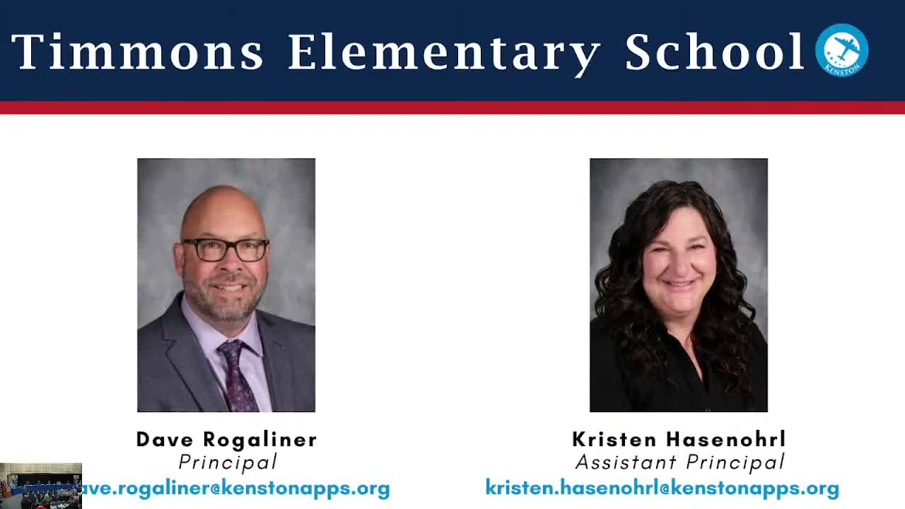 Administrators from Timmons Elementary and Kenston Middle School briefed the board on building-level goals and instructional strategies, emphasizing Multi-Tiered Systems of Support (MTSS), differentiated instruction and executive-function skill development.