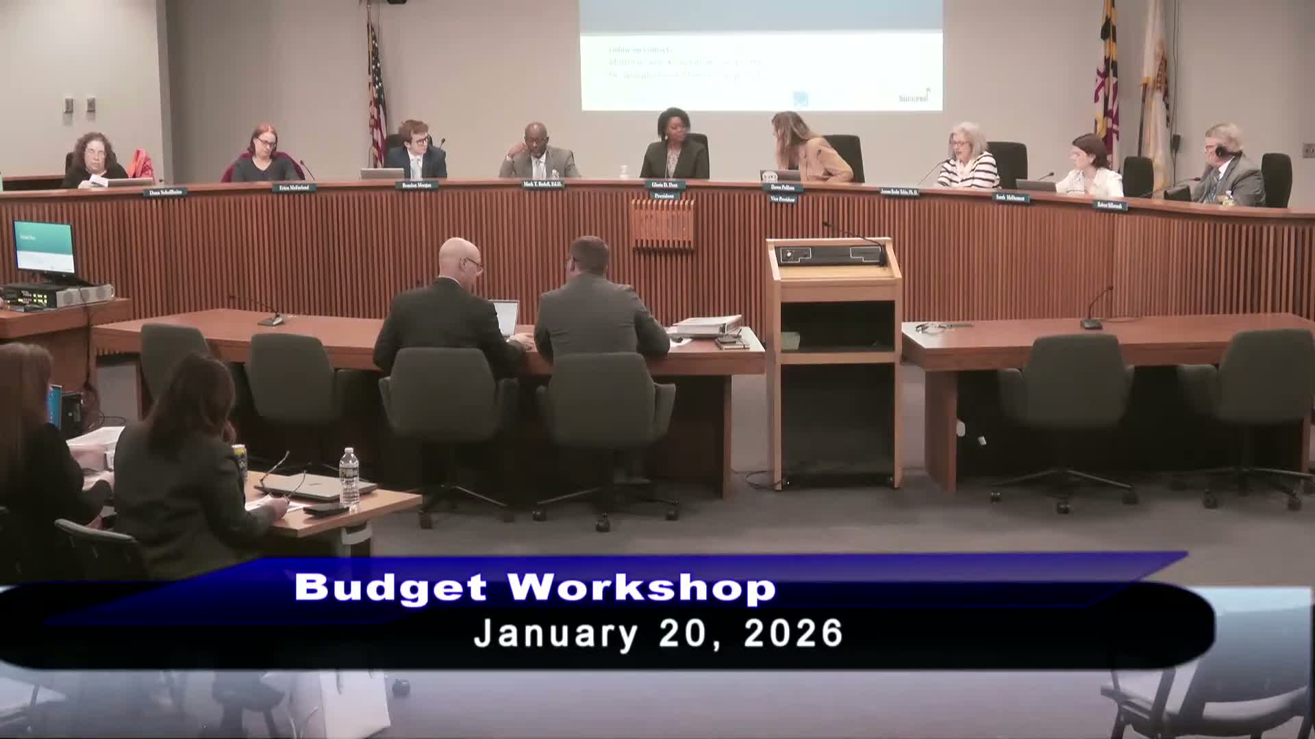 After presentations from county and district finance staff, board members used the public workshop to press administrators on equity and program priorities tied to the FY2027 request.