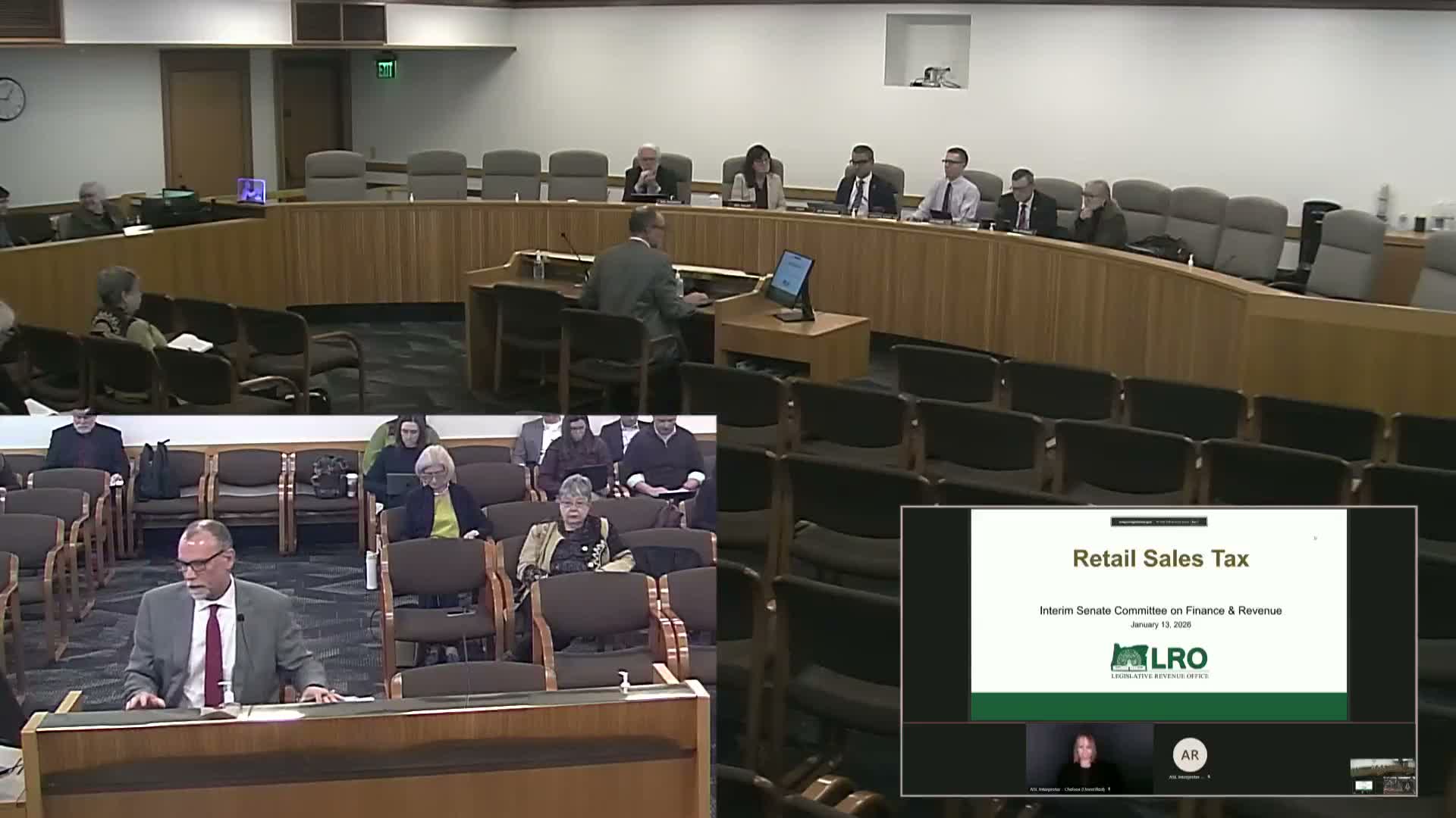 Chris Alenak of the Legislative Revenue Office gave a primer to the Senate Interim Committee on Finance and Revenue on types of taxes, the distinctions among general sales, selective sales, excise and gross-receipts taxes, and the policy choices states face when considering retail-sales taxation.