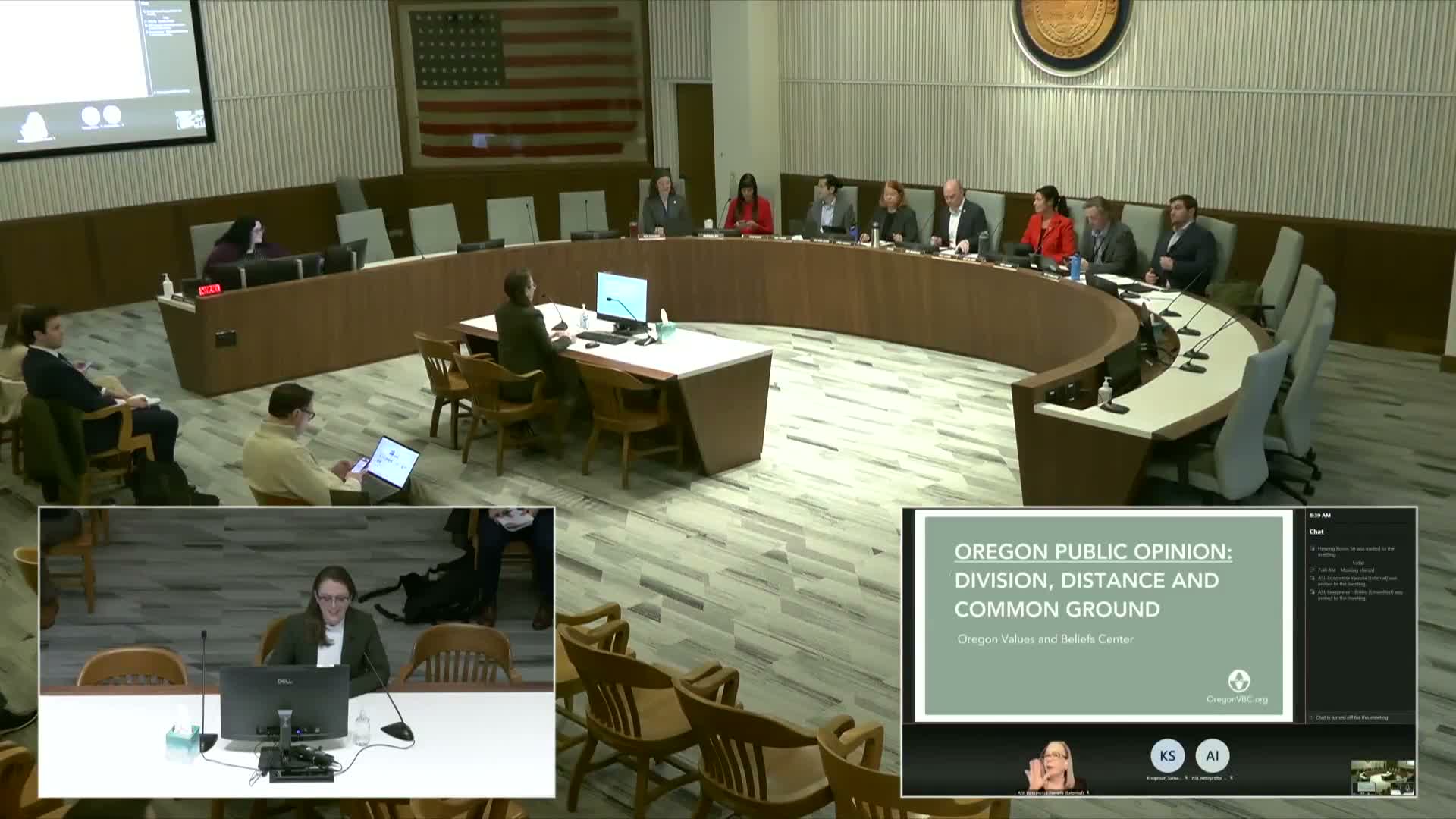 The Oregon Values and Beliefs Center told the House Rules Committee that its representative statewide survey finds more Oregonians say the state is on the 'wrong track' than the 'right direction,' with rural respondents reporting a notable drop in feelings of community connection. OVBC provided disaggregated results and methodological notes to legislators.