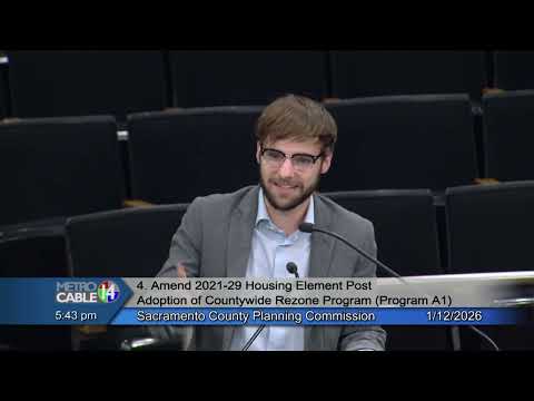 The Sacramento County Planning Commission on Jan. 12 recommended that the Board of Supervisors approve an amendment to the 2021–2029 housing element and related zoning-ordinance changes intended to incorporate countywide rezone sites and align local code with state "use by right" definitions.