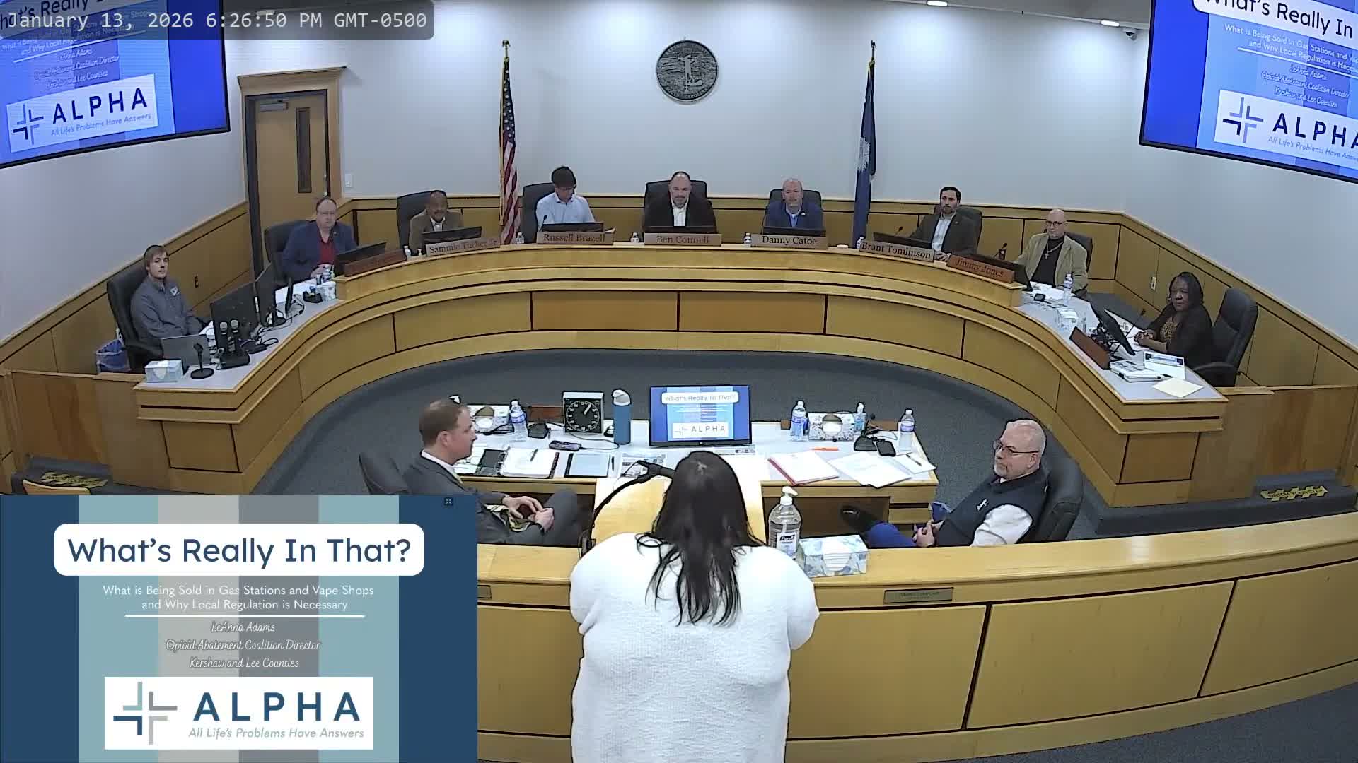 At the Jan. 13 Kershaw County Council meeting, representatives from the Alpha Center gave a quarterly update and an educational briefing on emerging retail drugs — products the presenters described as being sold casually in gas stations and vape shops and marketed in ways that can attract youth.