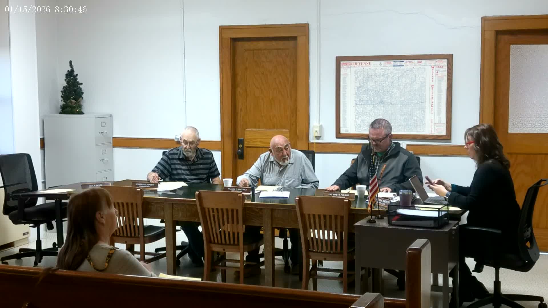 At a Cheyenne County meeting, an attendee reported the state declared an emergency for expected wind and fire weather and that Ryan, the county emergency manager director, will activate the Emergency Operations Center to a watch level in the morning to cover three counties.