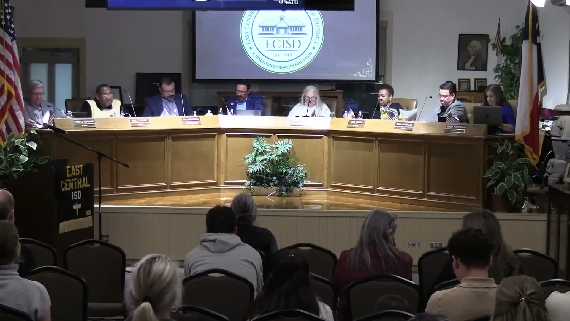 The East Central Independent School District board voted to adopt the recommended 2026–27 district calendar and approved several routine action items during the regular meeting.