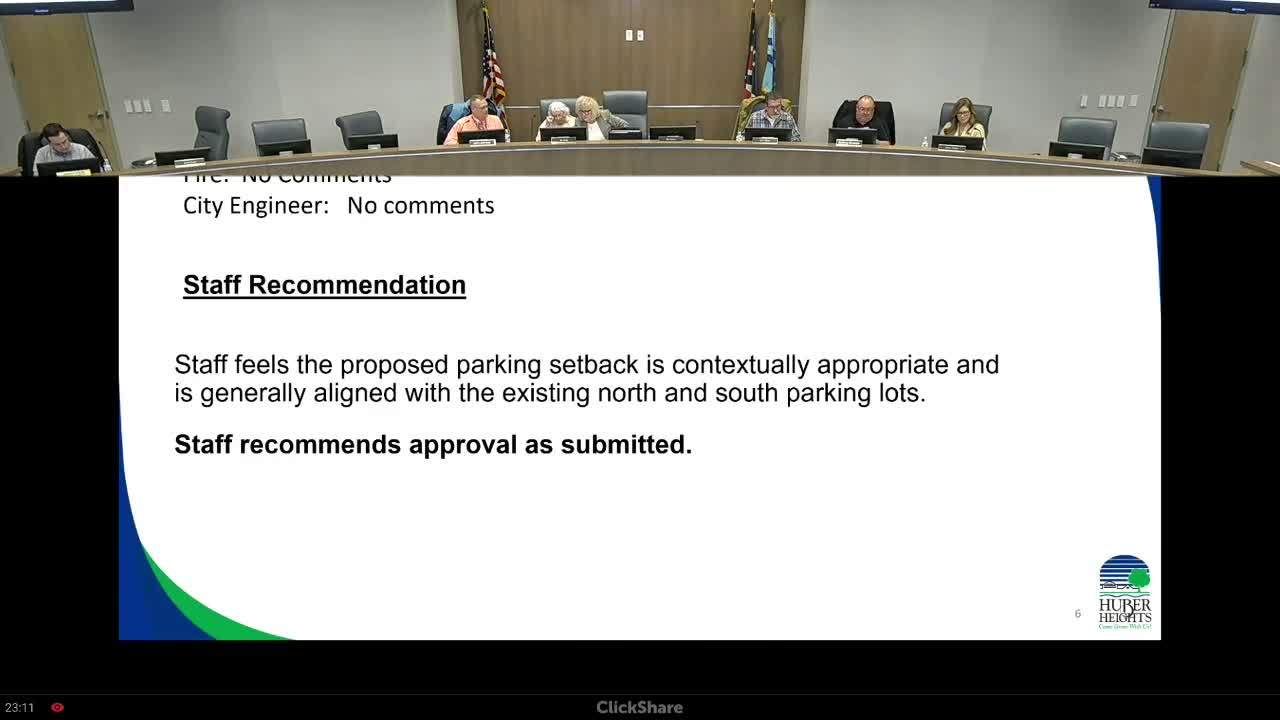The record shows the commission’s denial cited access, parking and setback nonconformance as the controlling issues; no formal variances or code waivers were granted at the hearing. The commission's transcript indicates staff and commissioners asked for additional police input and engineering follow-up that were not part of the packet.