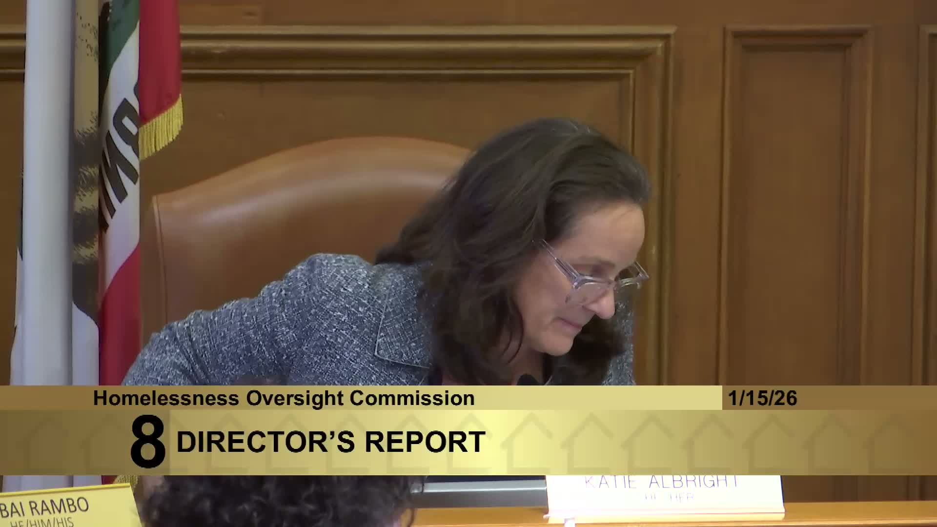 Director Shereena McSpadden updated the commission on outreach, coordinated entry, prevention services, inventory and vacancy data (8.6% vacancy as of Dec. 16, 2025), the large-vehicle housing effort, Providence Foundation reforms, and task force recommendations to restructure homelessness oversight bodies under Prop E.