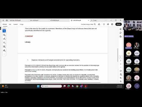 The library district approved consent agenda item 1 — amendments and budget amendments for operating transfers — by a recorded vote of 2 yes, 0 no, with one non-voting/absent supervisor; no dollar amounts were specified in the meeting record.