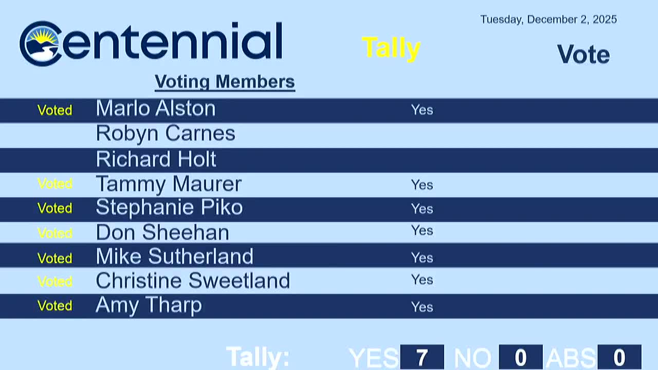 City Council adopted Ordinance 2025‑O‑14 on Dec. 2, approving amendments to Chapter 12 of the Centennial Municipal Code that revise approval criteria for site plans and rezonings.