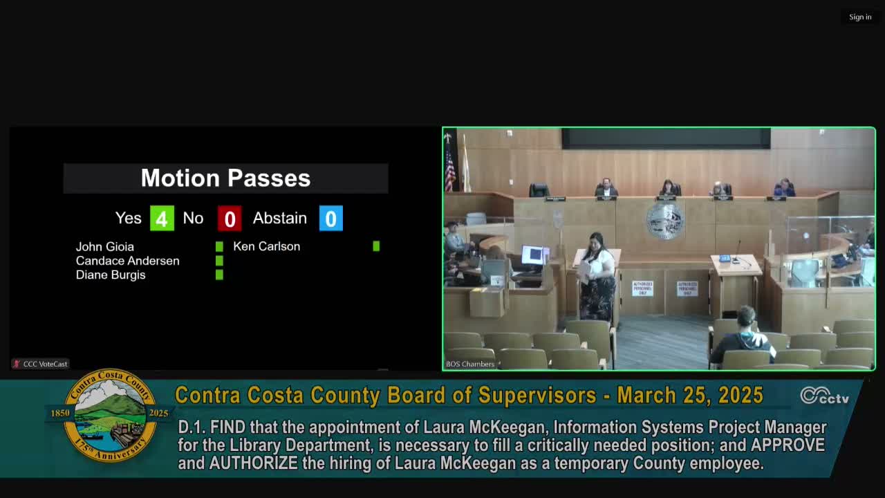 Supervisor Gioia moved to deny the appeal and adopt the Planning Commission decision as modified; Supervisor Ken Carlson seconded. The motion passed 4–0. The board directed staff to reflect the clarified, enforceable screening language in the final board order and to return to the record with contract/inspection steps as needed.