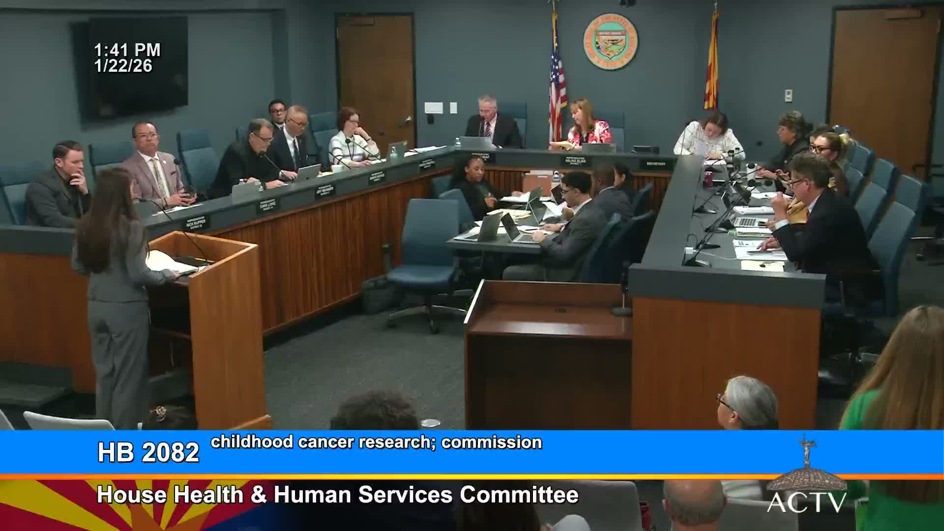 Proponents emphasized that HB 2082 would not initially cost the state general funds, instead using an underutilized license-plate fund and creating additional revenue paths to support grants for pediatric clinical trials.