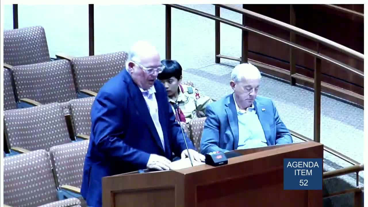 After hearing from candidate Mike Henifer, council discussed whether to split its 54 votes among candidates or cast all for Henifer; council voted to give all of Frisco's votes to Henifer.
